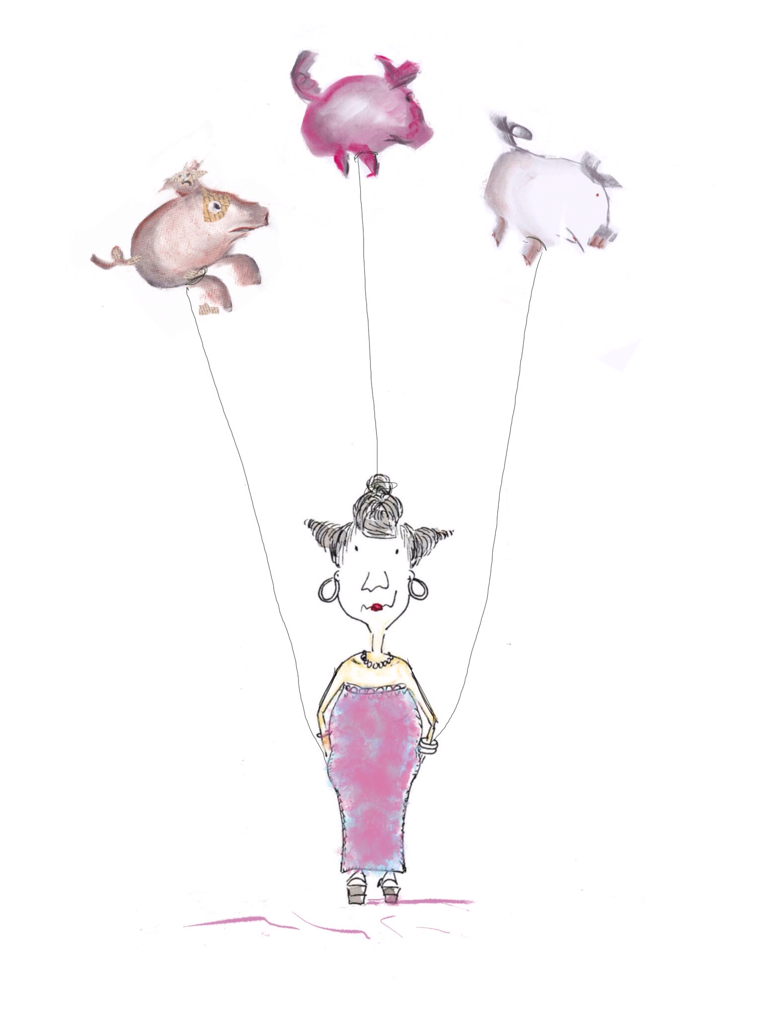 I did some pig arting here and Cindy kept company with me, commenting on every single brush stroke I put on the paper. Then she discovered the story telling pralines on the table and ate one.